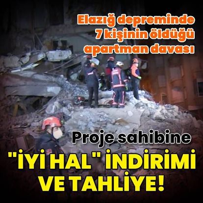 Elazığ depreminde 7 kişinin öldüğü apartmanın proje sahibine iyi hal indirimi ve tahliye